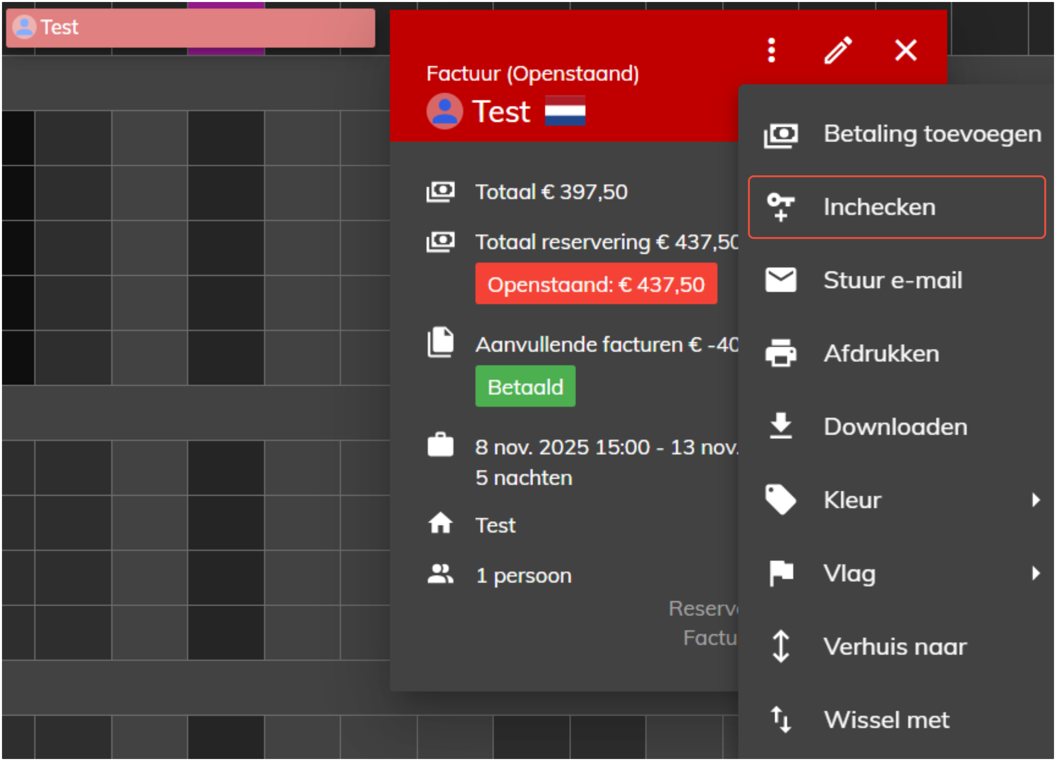Een reservering kan bij alle ingecheckte gasten, het maakt niet uit of dit een optie, bevestiging of factuur is.