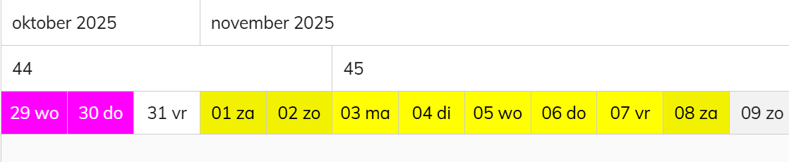 Ook kun je hier vakantie periodes aanmaken welke boven in het planbord en Yield overzicht komen te staan.