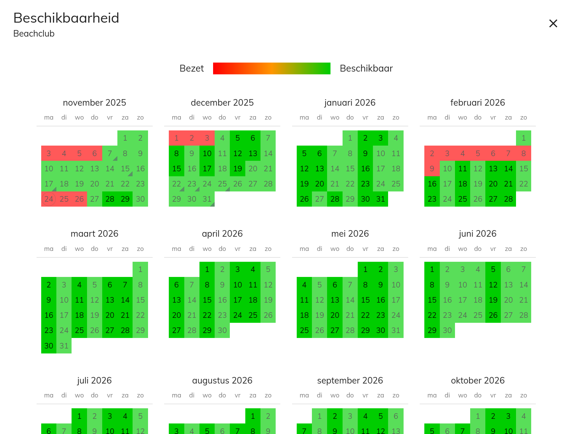 Klik je op het kalender icoontje naast het woord beschikbaarheid dan opent het beschikbaaheidsoverzicht;