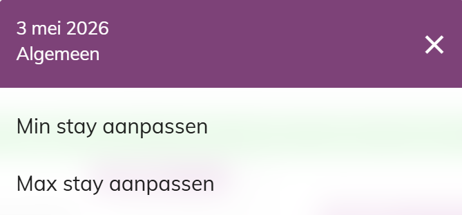 Klik op een datum om het minimaal of maximaal verblijf vanaf deze aankomstdatum te wijzigen.